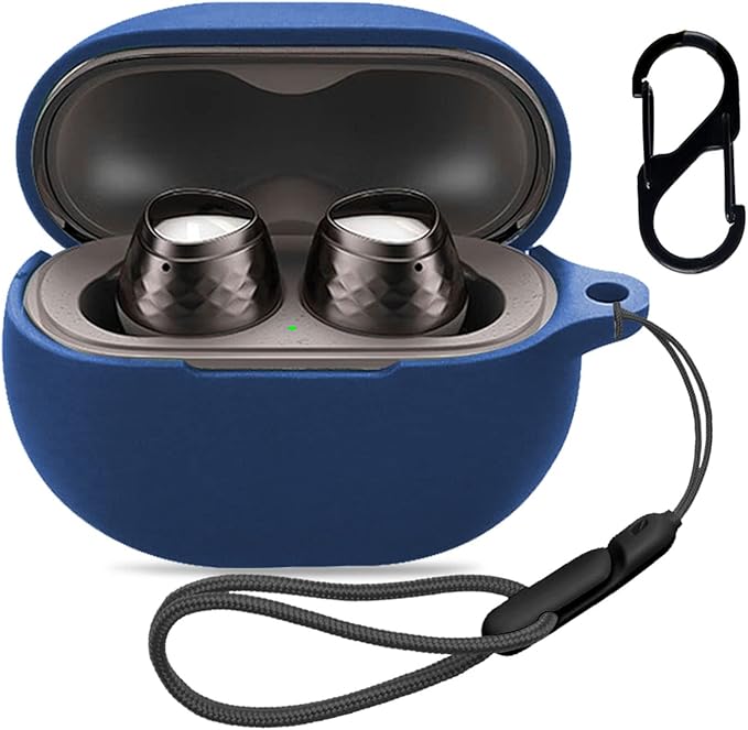 SoundPEATS Engine 4 用 ケース カバー (カラビナ付き+ストラップ付き )【NOUKAJU】ワイヤレス イヤーホン シリコン 保護ケース 落下防止 キズ防止 耐衝撃 装着充電可能 防水 防塵 (ブルー) a