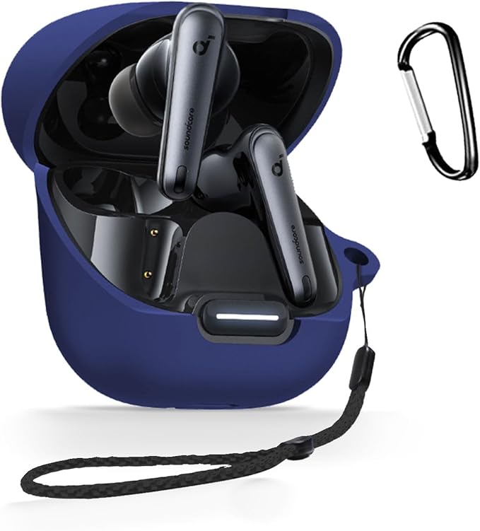 Anker Soundcore Liberty 4 NC 用 ケース 全面保護カバー シリコンケース 【HUKWIMO】 カラビナ付き 耐衝撃 防水 防塵 装着充電可能 全面保護 キズ防止 Soundcore Liberty 4 NC 対応インイヤーヘッドホン用ヘッドホンケース [ブルー 青] a