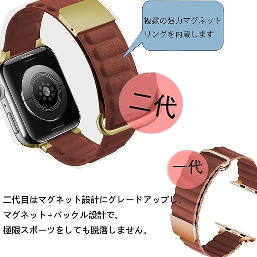 コンパチブル アップルウォッチ バンド 革レザー Apple Watch バンド マグネット 磁吸引式ループ 男女兼用 調整工具不要Apple Watch Series Ultra2/Ultra/SE2/SE/9/8/7/6/5/4/3/2/1に対応49mm 45mm 44mm 42mm 41mm 40mm 38mm1