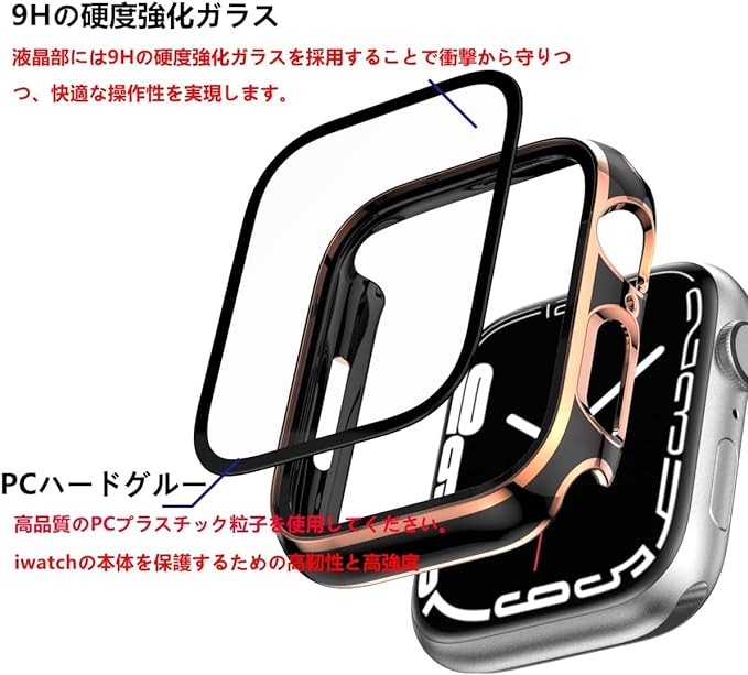 【高品質素材】保護ケースは耐久性と柔軟性に優れたPC素材を使用し、傷や汚れ、外部の衝撃からウォッチをしっかり保護します。透明度の高い液晶ガラス素材で作れられており、衝撃を有効的に防止できます、本来の明るくカラフル
