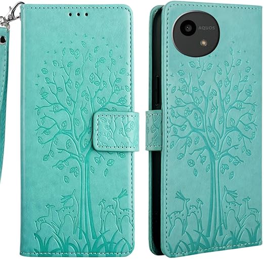 AQUOS wish4 ケース 手帳型 3枚 カード収納 アクオス ウィッシュ4 財布型 カバー SUGOIDAN 携帯ケース カードポケット付き カード レザー スタンド機能 ストラップ付き マグネット内蔵 耐衝撃 全面保護(グリーン) a