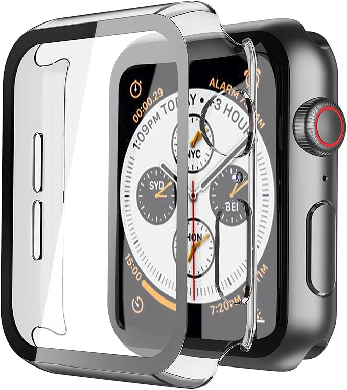 【3D全面保護&9Hの硬度】丈夫なPC(ポリカーボネート)素材によるフレーム部と硬度9Hで強靭な液晶部の保護フィルムからなる2重構造です。すべての側面を完全に覆い保護しながら、時計の液晶部への傷やダメージを防ぐ、Apple Watchを衝撃から守ります。