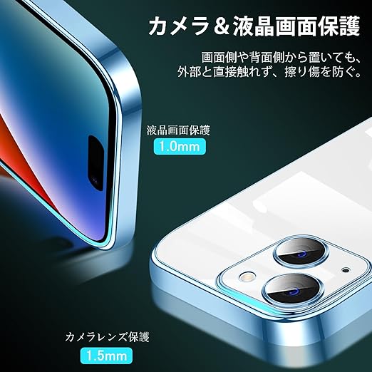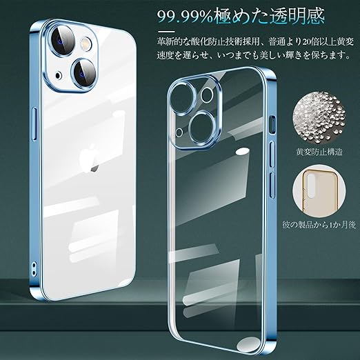 iPhone 15 用 ケース クリア 耐衝撃 iPhone15 用 カバー 軽量 薄型 TPU アイフォン15 用 スマホケース ワイヤレス充電対応 擦り傷防止 落下防止 ストラップホール付き メッキ加工- ブルー a
