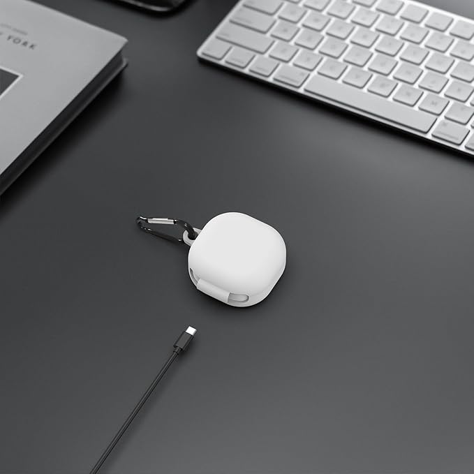 Geekria シリコンカバー 互換性 カバーサムスン Samsungs Galaxy Bud FE 対応充電ケース True Wireless Earbuds カバー 外装カバーキーホルダーフック付き、充電ポートアクセス可能(白) a