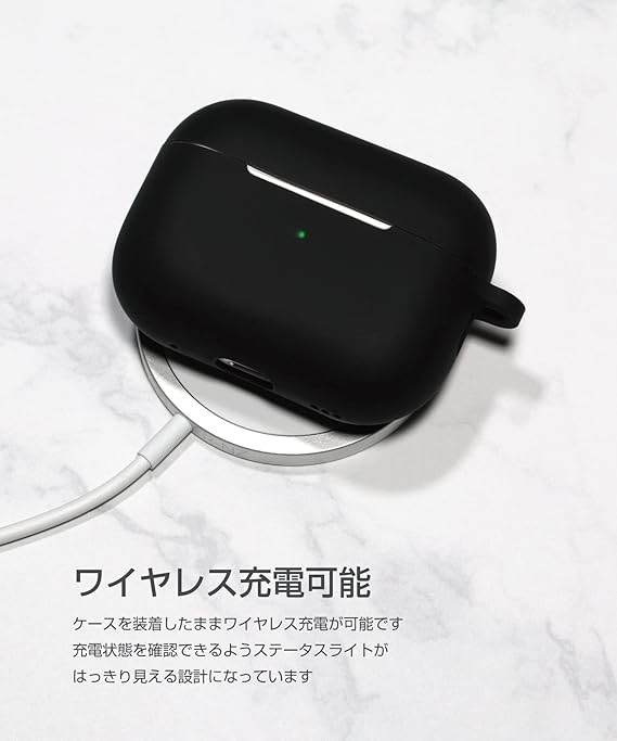 [musashino LABEL] AirPods Pro第2世代用シリコンカバー (Black) シリコン製 保護カバー 装着充電可能 ワイヤレス充電可能 LED確認可能 さわさわシルキー加工 武蔵野レーベル 黒 a