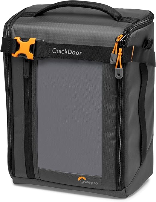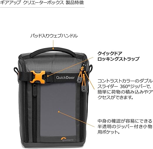 【QuickDoorで素早く機材にアクセス】バッグの中に入れた状態で簡単に機材の取り出しが可能。QuickDoorロックストラップを閉めれば不用意に開くことを防げる。