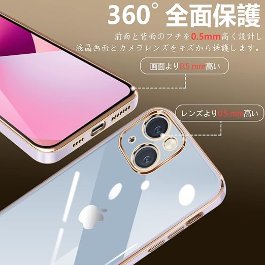 iPhone14 ケース クリア 透明 アイフォン14 カバー スマホケース 全面保護 耐衝撃 TPU ソフト 薄型 メッキ加工 携帯ストラップ ストラップホール付き 落下防止(パープル) a