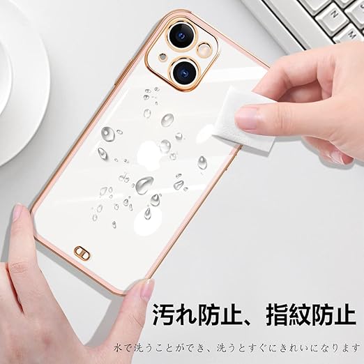 iPhone14 ケース クリア 透明 アイフォン14 カバー スマホケース 全面保護 耐衝撃 TPU ソフト 薄型 メッキ加工 携帯ストラップ ストラップホール付き 落下防止(ピンク) a