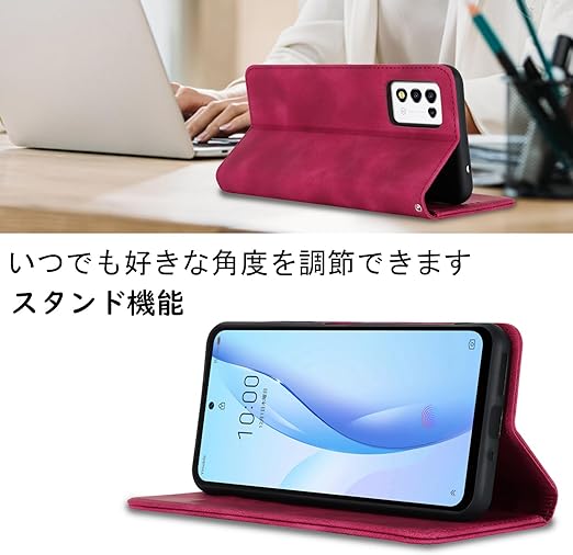 Havaya ZTE Libero 5G II ケース libero 5g iiケース A103ZT スマホケース 手帳型 ストラップ docomo libero5g2 耐衝撃 リベロ5g 2世代対応 カバー au Y!mobile マグネット式 SoftBank カード収納 レザー スエードの質感-ローズレッド a