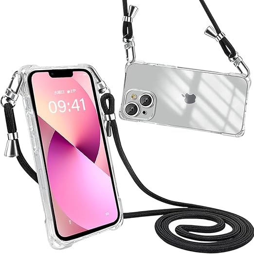 Peipeizi iPhone 14 ケース ショルダー クリア 肩掛け 首掛け アイフォン14 スマホケース ワイヤレス充電対応 カバー 耐衝撃 透明 軽量 全面保護 人気 韓国 柔軟 高質感(ブラック) a