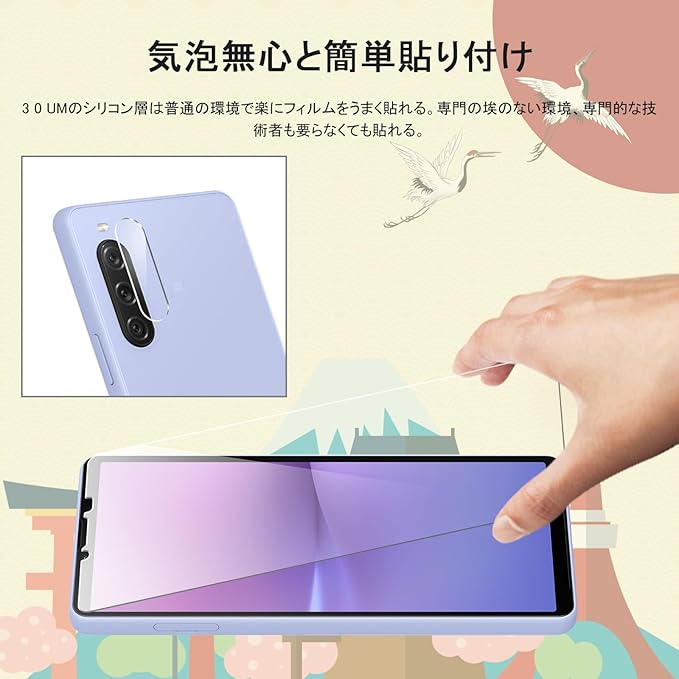 【対応機種】Xperia 10 V SOG10 SO-51D 専用設計。※この機器は周辺部が曲面となったラウンド仕様のため、保護フィルムを端まで貼ることができません。そのため、表示部分よりも保護フィルムが小さくなっています。ご了承の上ご購入ください。