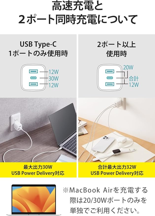 ※USB Power Delivery規格30Wまでで充電できる機器に限ります。