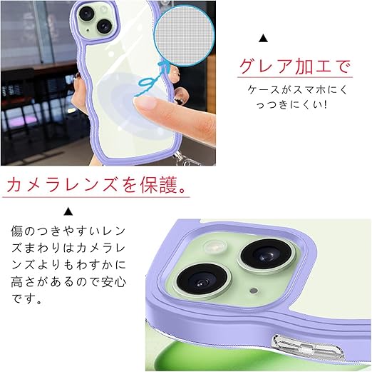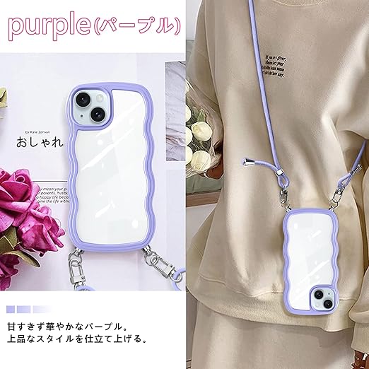 iPhone15 ケース クリア ショルダー カバー いPhone 15 スマホケース 創意 個性 肩掛け 首掛け 斜めかけケース 可愛い かわいい 韓国 透明 TPU 薄型 耐衝撃 アイフォン15(パープル) a