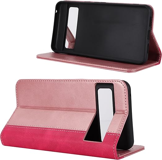 Google Pixel 8 Pro ケース グーグル pixel 8 pro 手帳型 google ピクセル 8 pro カバー グーグル ピクセル 8 プロ 手帳ケース google pixel 8 pro case zouzt 合成皮革 財布型 カード収納 ベルトなし マグネット スタンド - ピンク+ローズレッド a
