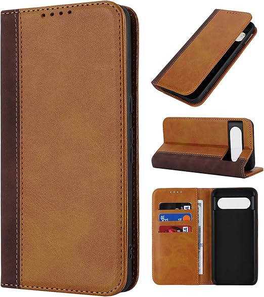 Google Pixel 8 ケース グーグル pixel 8 手帳型 google ピクセル 8 カバー グーグル ピクセル 8 手帳ケース google pixel 8 case zouzt 合成皮革 財布型 カード収納 ベルトなし マグネット スタンド 4色 イエロー+ブラウン b