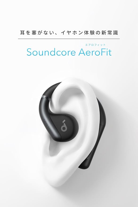 Anker Soundcore AeroFit(Bluetooth 5.3)【オープンイヤー型ワイヤレスイヤホン / IP57防塵防水規格/ 最大42時間再生 / マルチポイント接続/PSE技術基準適合】ブラック a