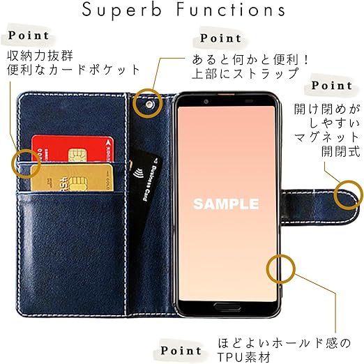 AQUOS R8 pro SH-51D ケース 手帳型 カバー SH51D SH-51Dケース SH-51Dカバー SH51Dケース SH51Dカバー AQUOSR8pro アクオスR8 プロ 手帳型ケース スマホケース 手帳 部長 ネイビー a