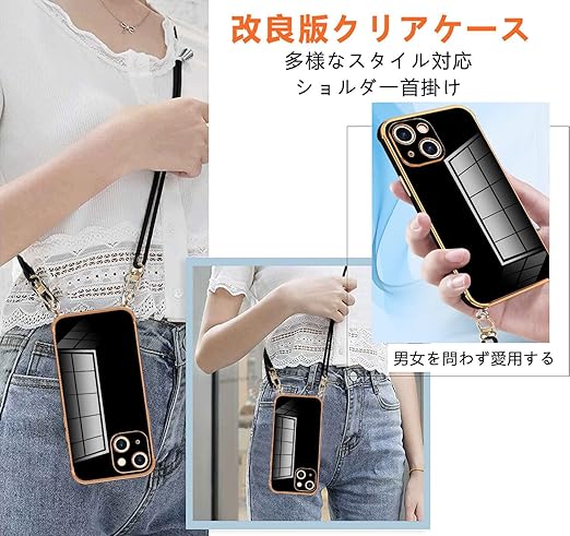 iPhone 15 用 ケース ショルダー 新型韓国 可愛い 薄型 軽量 TPU 耐衝撃 シリカゲル メッキ加 TPU ネック ショルダー ストラップ付き スマホ シリコン iphone 15 スマホケース 首掛け 肩掛け 斜めかけ 縄掛け ケース ストラップ付き 1.5M 取り外し調節可能な アイフォン15 用 カバー a