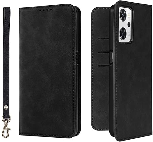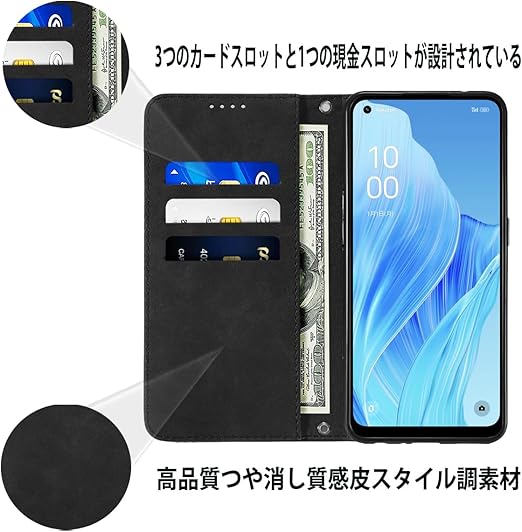 NanHou OPPO Reno 9A/7A ケース 手帳型 つや消し レザー スタイル質感 A201OP カバー 手帳型 耐衝撃 保護カバー 内蔵マグネット 財布型 CPH2353 携帯カバー カードポケット スタンド機能 リストバンド OPPO Reno 7A 手帳型 - ブラック a
