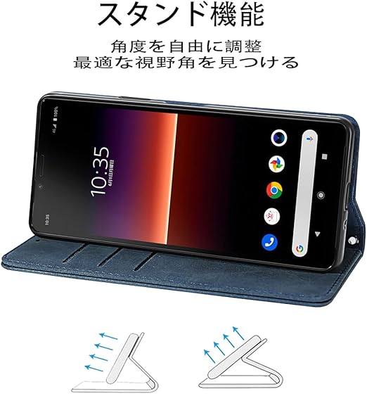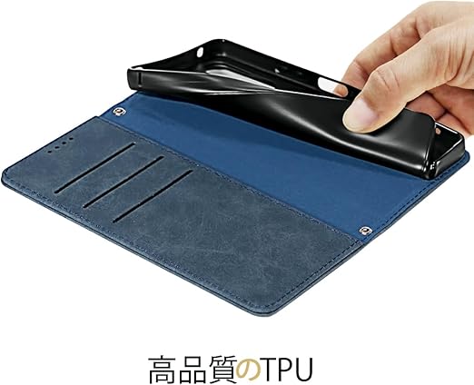 NanHou Xperia 10 V ケース 手帳型 つや消し レザー スタイル質感 SO-52D カバー 手帳型 耐衝撃 保護カバー 内蔵マグネット 財布型 SOG11 携帯カバー カードポケット スタンド機能 リストバンド Sony エクスペリア 10V 手帳型 - ダークブルー a