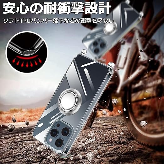 iPhone 15 Pro 用 ケース クリア ショルダー リング付き iphone15pro 用 スマホケース 多機能スタンド アイフォン15Pro カバー 肩掛け 斜めかけ 縄掛けケース 透明 PC+TPU 薄型 軽量 耐衝撃 長さ調整可能 取り外し可能 ネックストラップ ショルダー ケース 落下防止 紛失防止 (クリア) a