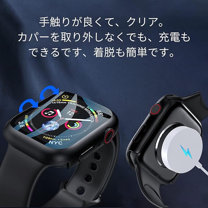 【高品質素材】保護ケースは耐久性と柔軟性に優れたPC素材を使用し、傷や汚れ、外部の衝撃からウォッチをしっかり保護します。透明度の高い液晶ガラス素材で作れられており、衝撃を有効的に防止できます、本来の明るくカラフル