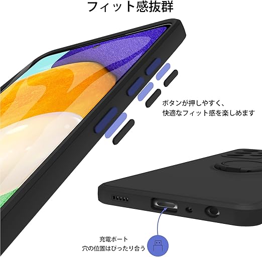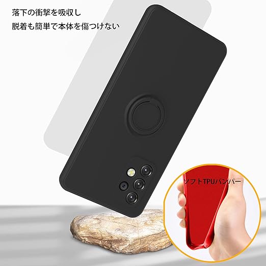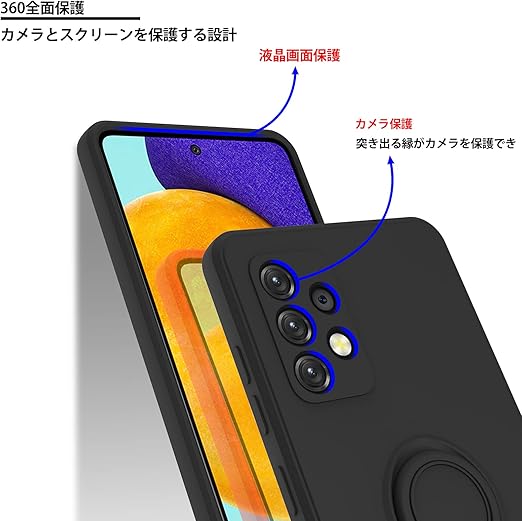AQUOS wish3 ケース TPU 耐衝撃 リング シリコンケース 薄型 ソフト 全面保護カバー 指紋防止 リング付き スタンド機能 車載ホルダー対応 360°回転 レンズ保護 ストラップホール付き スリム 軽量 黄変防止 防塵 アクオス ウィッシュ3 用カバー[黒] KC6-238 a