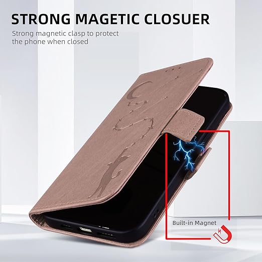iPhone 15 pro max ケース いphone15pro max ケース アイフォン 15 プロマックス ケース 手帳型 スタンド機能 マグネット カード収納 ONETHEFUL iphone15 pro max ケース 流れ星と月猫柄 耐衝撃 全面保護 可愛い 猫柄 柔らかいTPU iphone15promax ケース 6.7inch - ローズパウダー a