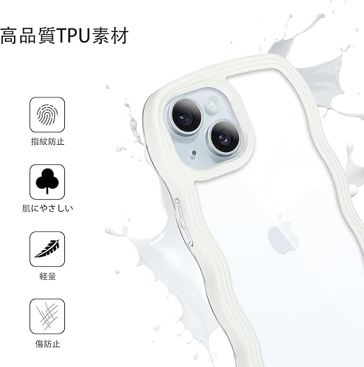 BENTOBEN iPhone 15 ケース クリア 韓国 可愛い ウェーブ ソフト 滑り止め TPU 薄型 軽量 耐衝撃 おしゃれ スマホケース ス2