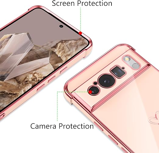 ZTOFERA Google Pixel 8 Pro 用 ハートケース おしゃれ 韓国 かわいい グーグル ピクセル 8 Pro ケース 柔軟な TPU シリコン メッキ加工 ソフト 軽量 耐衝撃 携帯カバー 女性 心パターン Pixel 8 Pro スマホケース ワイヤレス充電対応 (ピンク) a