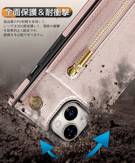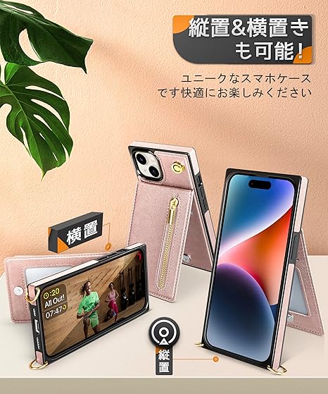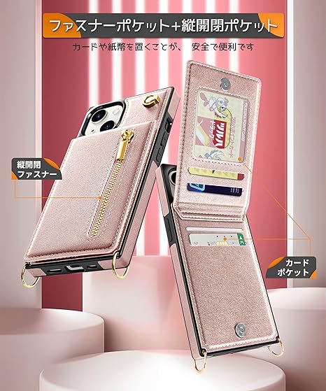 YIHARA iphone 15 ケース手帳型 iphone 15 スマホ ケース 財布型 iPhone 15 適用 携帯ケース 肩掛け 首かけ 斜めがけ ショルダー アイフォン15ケース手帳型 背面 カード収納 ストラップ付き 上下開 長さ調整可能 ピンク a