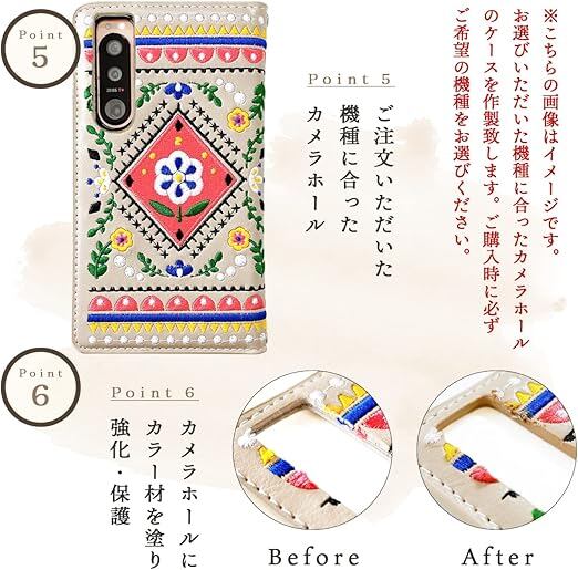 カードなどが収納できるポケット付きで、実用的な手帳型ケースです。手帳表面に特殊な加工を施してありますので細かい傷などがある場合がございます。予めご了承ください。