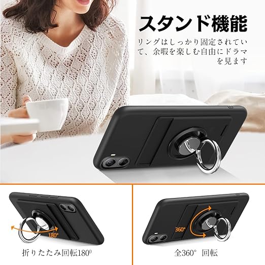 ZTE Libero 5G IV ケース リング付き シリコン 背面 カード収納 リベロ5g 4 ケース スタンド機能 360°回転リング 耐衝撃 耐久 滑り止め 黑 a