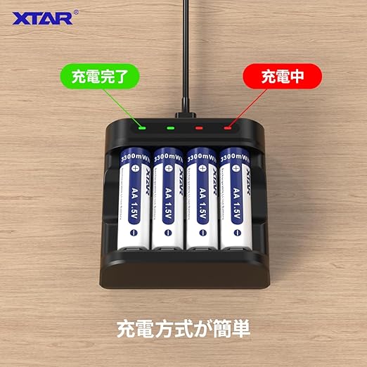 XTAR 1.5V AA 3300mWhリチウム充電池 単三 L4充電器セット a