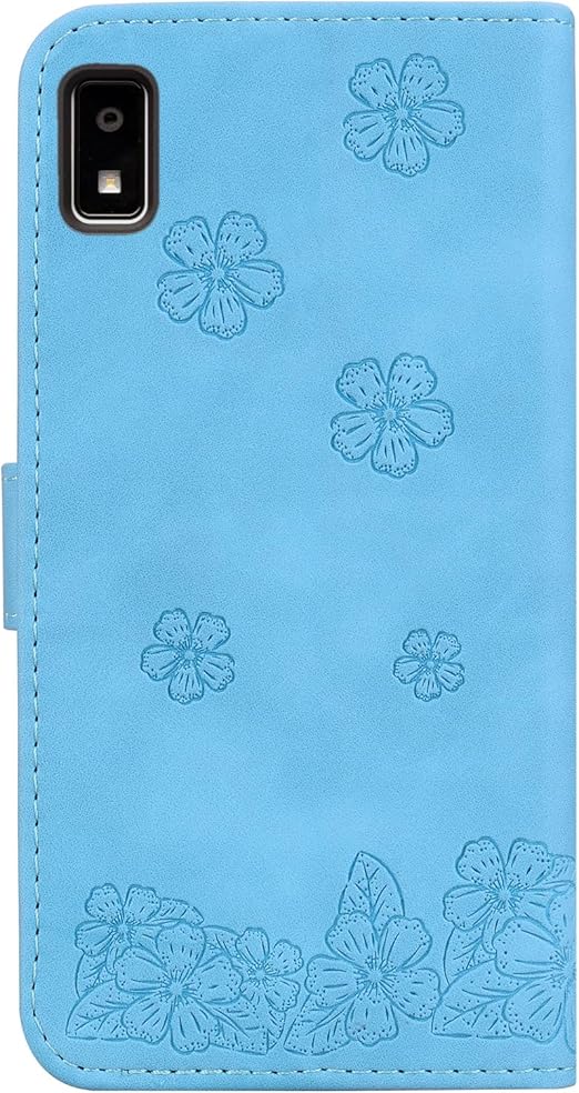 KW-LINK AQUOS wish3 ケース 手帳型 docomo SH-53D ケース au A302SH カバー かわいい 猫の後ろ姿 SH-M25 携帯カバー アクオス ウィッシュ3 ケース 手帳型 AQUOS wish3 スマホケース 財布型 スタンド機能 マグネット式 薄型 軽量 美しい 桜の花 - ブルー a