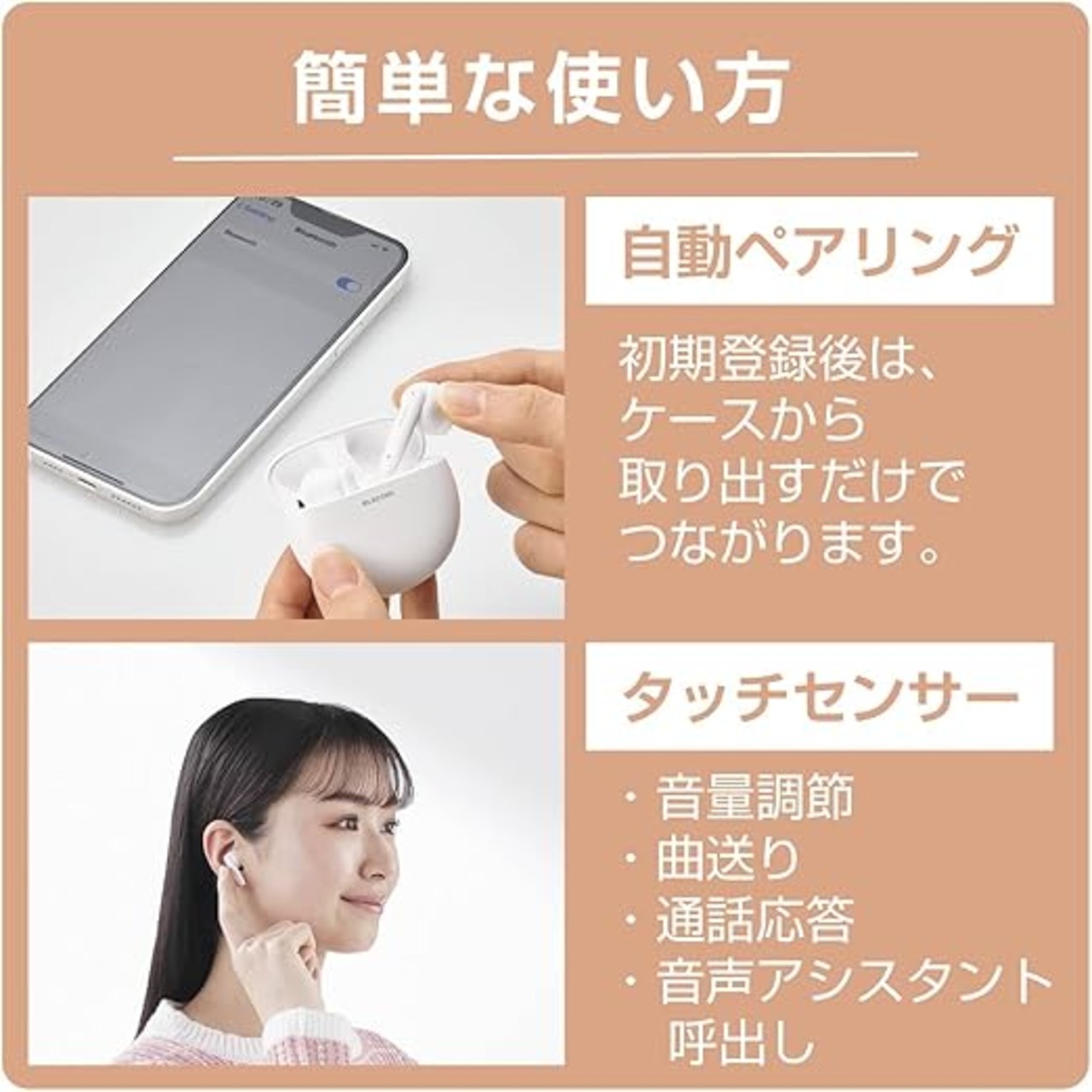 装着時も収納時もコンパクトな、セミオープンタイプのBluetooth(R)完全ワイヤレスステレオヘッドホンです。
