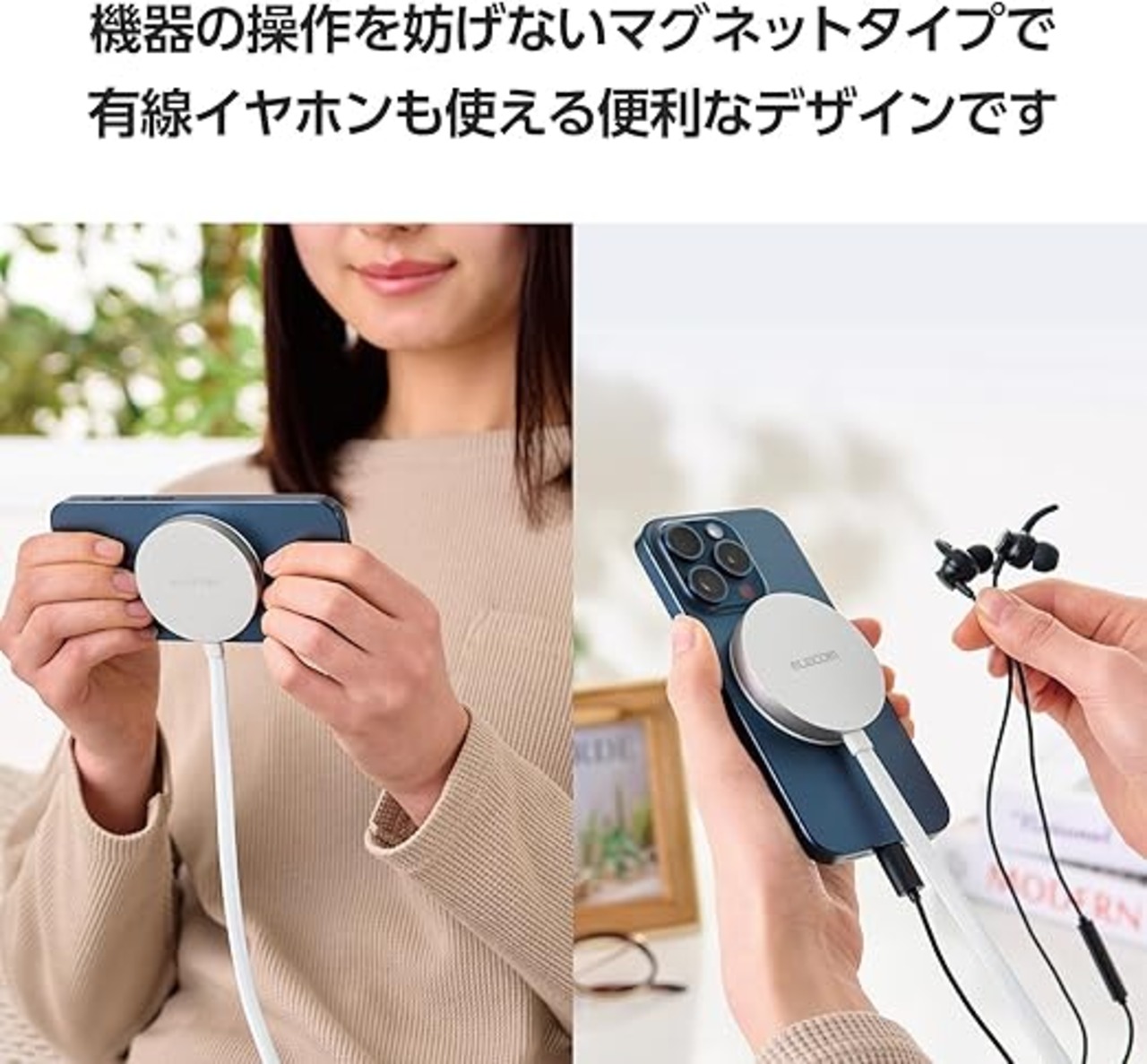 iPhoneの背面カメラと干渉しない、直径約60mmのコンパクトサイズです。