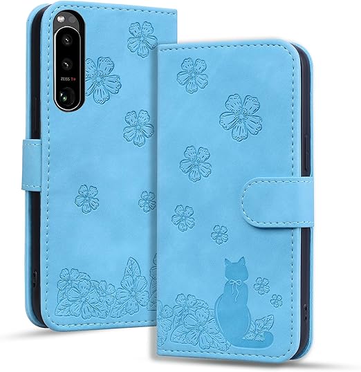 KW-LINK Xperia 5 II ケース 手帳型 SO-52A ケース SOG02 カバー かわいい 猫の後ろ姿 携帯カバー ソニー エクスぺリア5 ii ケース 手帳型 Xperia 5 II カバー SO-52A SOG02 ケース SONY Xperia5 ii スマホケース 財布型 スタンド機能 マグネット式 薄型 軽量 美しい 桜の花 - ブルー a