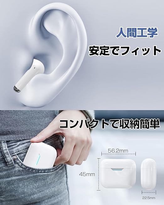 【2024進歩究極モデル】ワイヤレスイヤホン bluetooth イヤホン ワイヤレス イヤフォン hi-fi音質 & 重低音 片耳 蓋を開け自動接続 EDR ダブルマイクENC CVC8.0通話ノイズキャンセリハンズフリー通話 AAC/SBCコーデック 無線 インナーイヤー タイプc充電 OVP タッチ 左右分離 フィット 音量調整/siri 日本語音声/説明書 通勤通学 a
