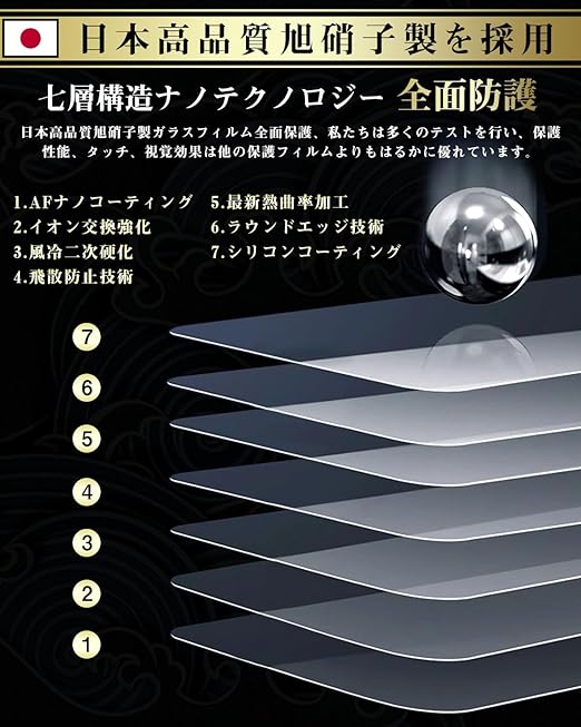 【日本製素材旭硝子製・耐衝撃性!】 日本製旭硝子素材、9H硬度、またハードコーティング技術により、強度を普通より3倍以上アップしており、液晶画面をしっかりと保護する。ハードコーティング技術により外部からの衝撃をフ