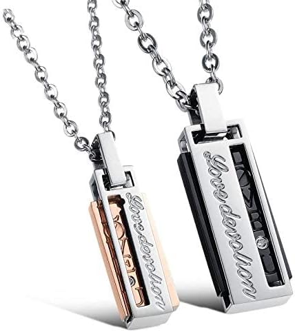 [Rockyu] ブランド ペアネックレス メンズ レディース ネックレス ピンクゴールド ブラック ステンレス ジルコニアcz LOVE-U 刻印 長方形ペンダント カップル ネックレス 記念日 恋人 人気 ギフト (ピンクゴールド) a