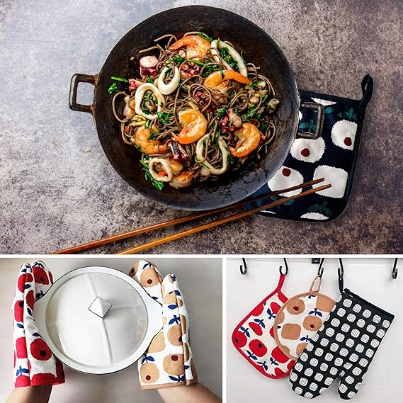 FEOYA 耐熱ミトン プリント ベーキング断熱手袋 北欧デザイン 手袋滑り止め キッチン断熱グローブ キッチン用 バーベキューグローブ 2*ブルー a
