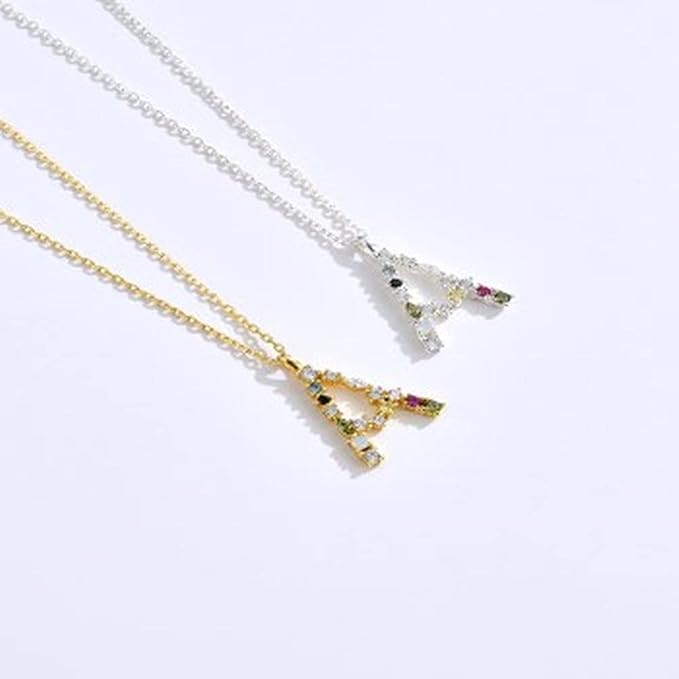 Rockyu ネックレス レディース ゴールド 18金 シルバー 5A ジルコニア アルファベット ペンダント 豪華 キラキラ A-Z イニシャルネックレス 細い 鎖骨チェーン 恋人 記念 ファッションアクセサリー (Yellow,G)