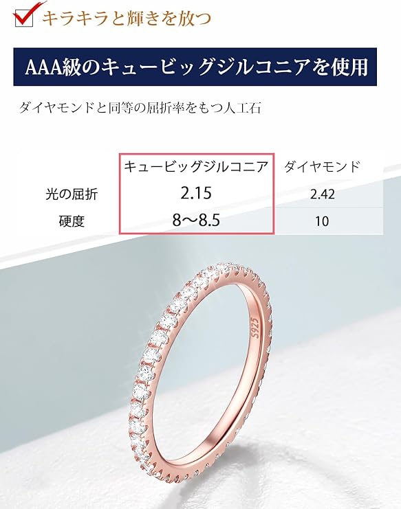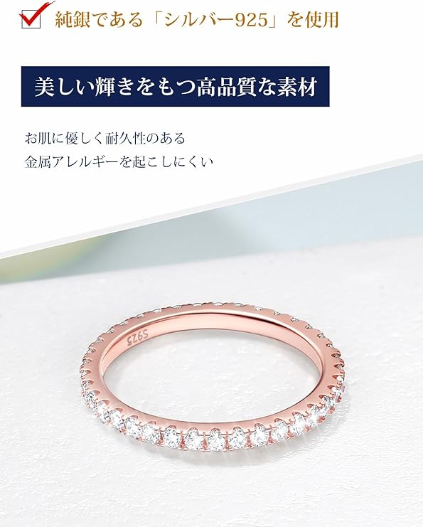 [Suplight] エタニティリング レディース 人気 シルバー925 指輪 ジルコニア 幅2mm 細め アクセサリー a