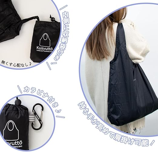 [Lampo] 【極小軽量】エコバッグ たたまない!超簡単!クシュっと丸めるだけ!大容量 コンパクト おしゃれ マチ付き 丸洗い 肩掛け ショッピングバッグ 5㎝×7㎝ カラビナ付き