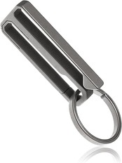 [TKhits] チタン カラビナ ベルト クリップ [バネ不使用 オールチタン製] キーホルダー キーリング 付き グレー ベルト吊り下げ タイプ a