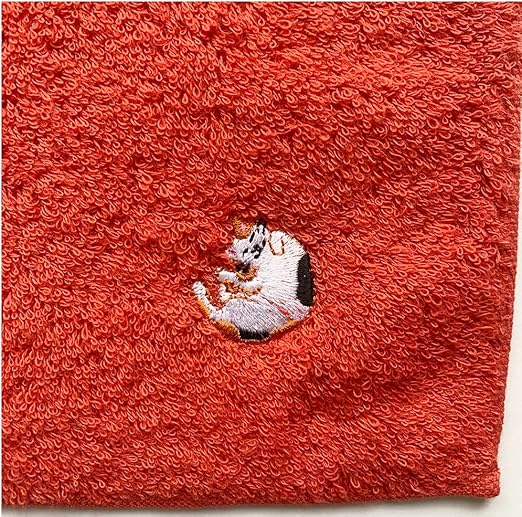 京佑 日本製 今治 くるみん タオル ハンカチ 刺繍 丸ねこ 赤色 25×25cm はんかち1