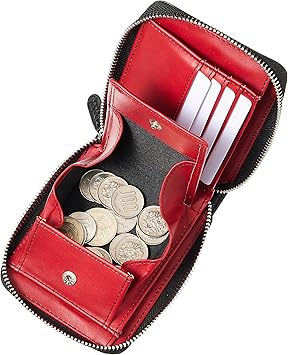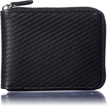 [VOICE] ヴォイス メンズ カーボンレザー 二つ折り 財布 『技あり』厚くならない ラウンドファスナー 使いやすい BOX型小銭入 プレゼント 用 ギフト 箱入り (Black/Red) a