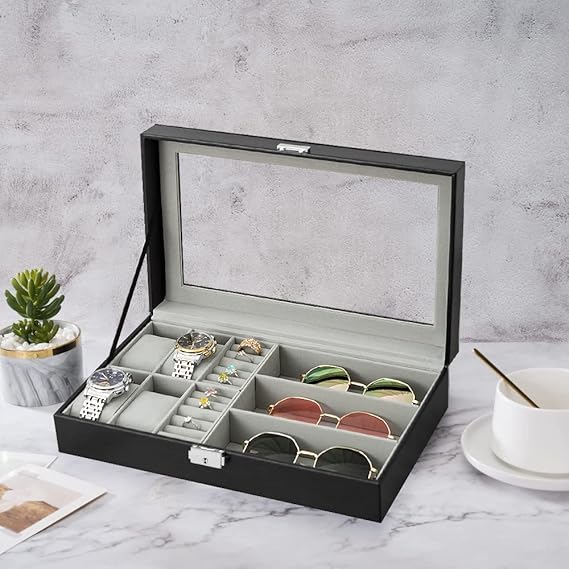 【透明なガラス天板】天板にはガラスを採用し、太陽光を取り入れソーラー充電式の腕時計にも対応可能です。電波受信にも支障ありません。埃やキズなどからも守ることができるので、アイテムを安全に保管できます。