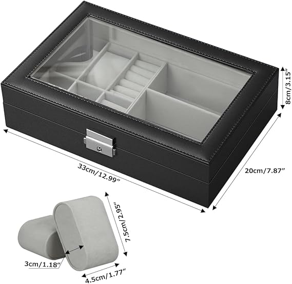 【サイズ】20奥行き x 33幅 x 8高さ cm、この腕時計ケースの蓋は高級感があふれています。※すべての時計に対応してはいませんので、発注前、必ずサイズをご確認いただきます。